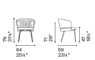 Vanilla - это стул, пропорции и уровень комфорта которого напоминают обеденные кресла. Его отличительной особенностью, вдохновленной миром моды, является ткань с рюшами и горизонтальный элемент, который опоясывает спинку подобно поясу. Как деревянные, так и металлические ножки подчеркивают присущую ему элегантность.
