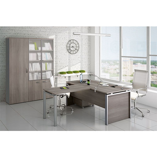Кабинет руководителя ФЛЭШ: современный дизайн с металлическими опорами и вставками ЛДСП.